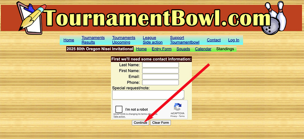 This is a screenshot of the Entry Form start page. Once you’ve filled out the information, click “Continue” to proceed.
