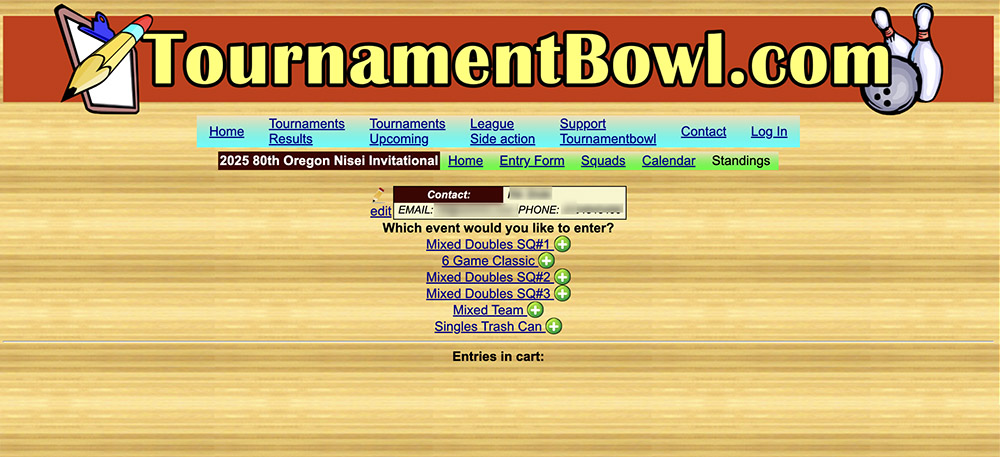 Next, choose the events you wish to enter, input bowler names, USBC numbers and averages. Select “add to cart”. Then add more events as needed. Please have bowlers’ USBC numbers and averages ready.